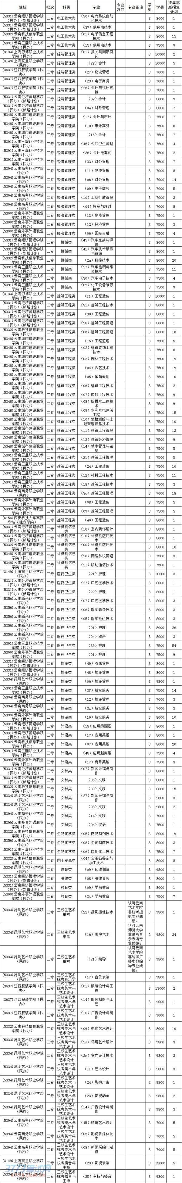 2014年云南省普通高校招生二专三校生征集志愿招生计划