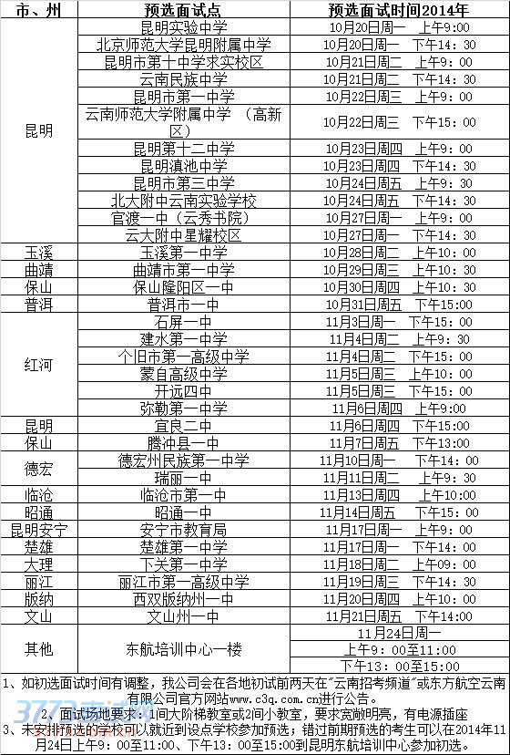 [图文]2015年东航云南公司招收飞行学生预选初检日程