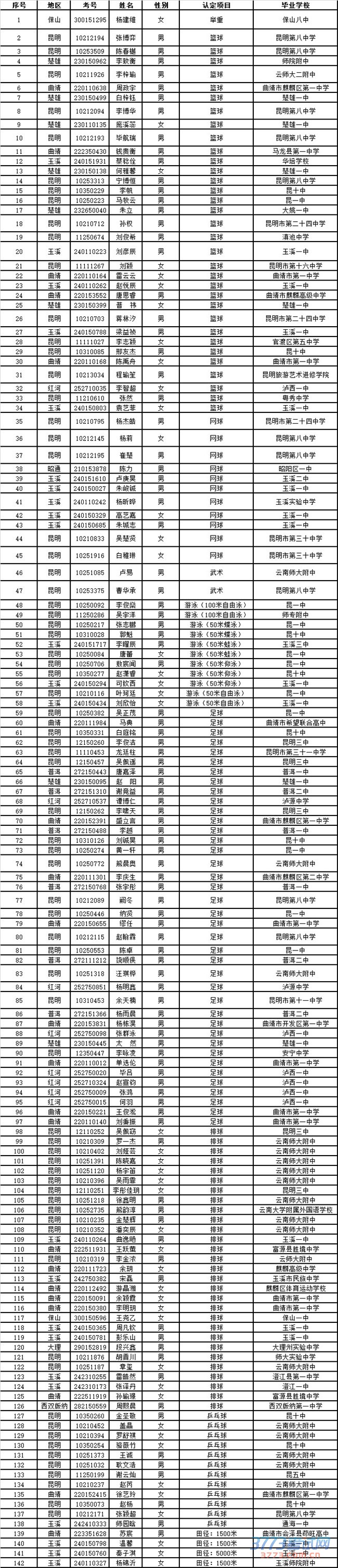 [图文]2015云南高考获得二级运动员证书的考生公示名单