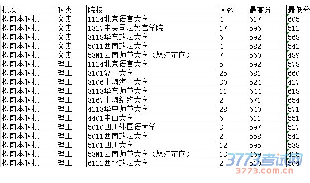 [图文]2015年7月12日云南高考录取分数线日报(提前批本科)