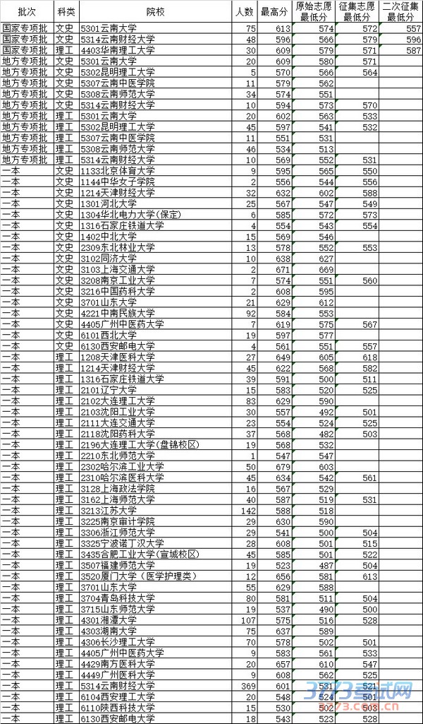 此外省内院校云南财经大学“表现”也不俗,两天前,该校就以最高分614分、最低分561分,力压部分“211”高校,录走了227名文科生。在22日进行的理科类录取中,云财大录走369人,最高分601分、原始志愿最低分531分、征集志愿最低分521分,“热度”超过了辽宁大学、东北师范大学等“211”高校。