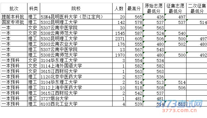 [图文]2015年7月25日云南高考录取分数线日报