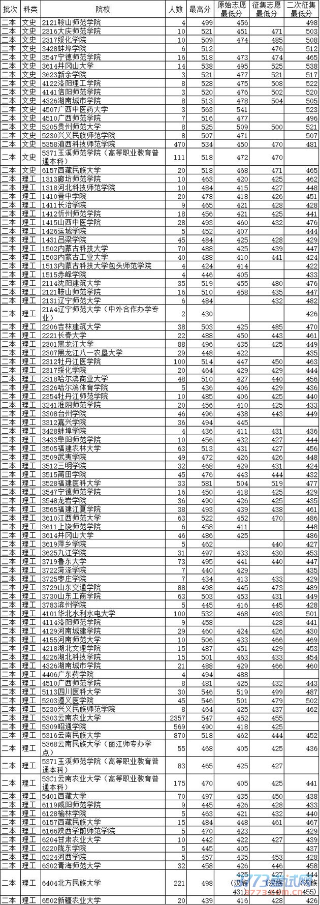 [图文]2015年8月1日云南高考录取分数线日报