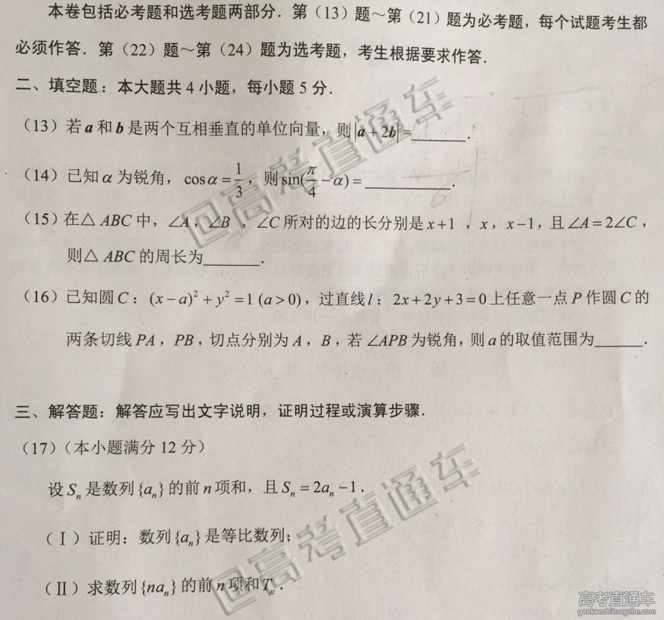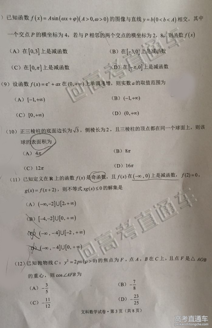 [组图]2016昆明高考适应性考试数学文科试题及答案