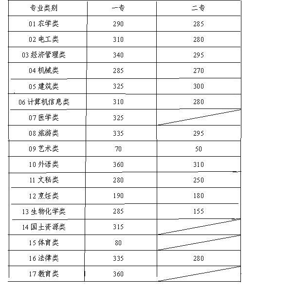 注: 07医学类、14国土资源类、15体育类、17教育类无二专计划。