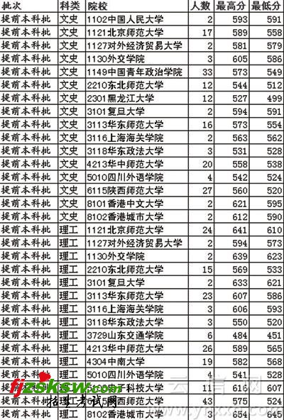 记者注意到,北京高校的文史类专业表现出色,中国人民大学、北师大、外交学院、青年政治学院等高校的录取最低分都高出一本线50分以上,其中录取分数最高的中国人民大学最低录取分数线为591分,高出一本线96分。在理工类方面,北师大、外交学院、复旦大学、华东师范大学、上海海关学院、电子科技大学、香港城市大学均有600分以上考生被录取。陕西师范大学录走43名云南考生,成为昨日录取高校中录取理工类学生最多的院校,最低分数控制线达到524分。
