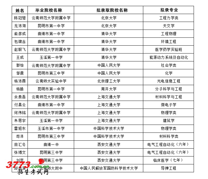 2012年云南省保送生拟录取资格名单2012年云南省高考保送生拟录取资格名单