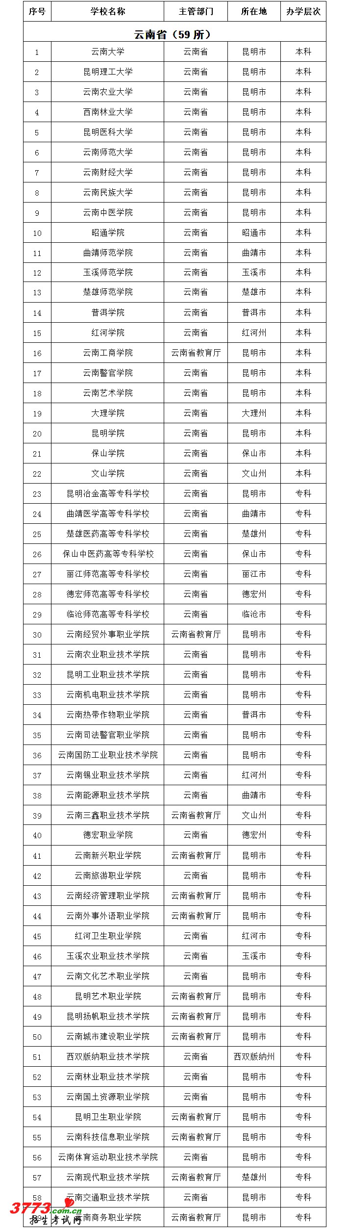 2012年云南省普通高校名单根据教育部公布的最新数据,截至2012年4月24日,全国普通高校(不含独立学院)共计2138所,其中独立设置民办普通高校403所;全国成人高校共计348所,其中民办成人高校1所。