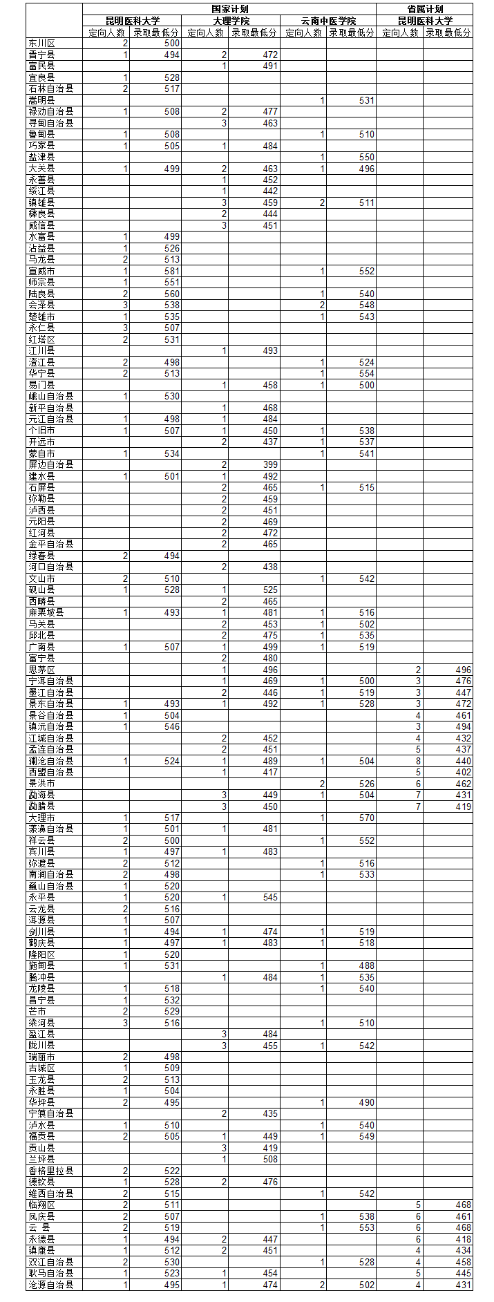 [图文]2012年云南省农村订单定向免费医学生招生情况统计表