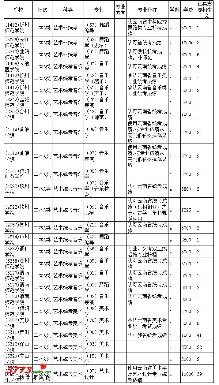 [图文]2012年云南高考二本艺术类院校征集志愿招生计划