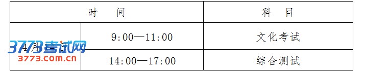 1、考试科目:文化考试+综合测试。