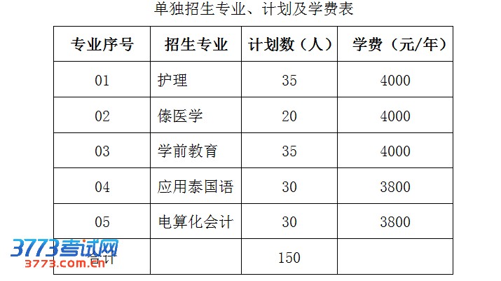 二、单独招生专业及学费:单独招生专业、学费详见下表。