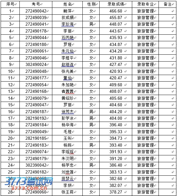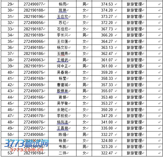 [组图]云南财经大学西双版纳酒店管理学院三校生本科预录取名单