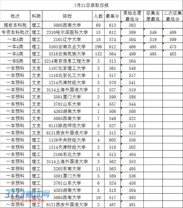 2013普高招生7月21日录取日报2013普高招生7月21日录取日报