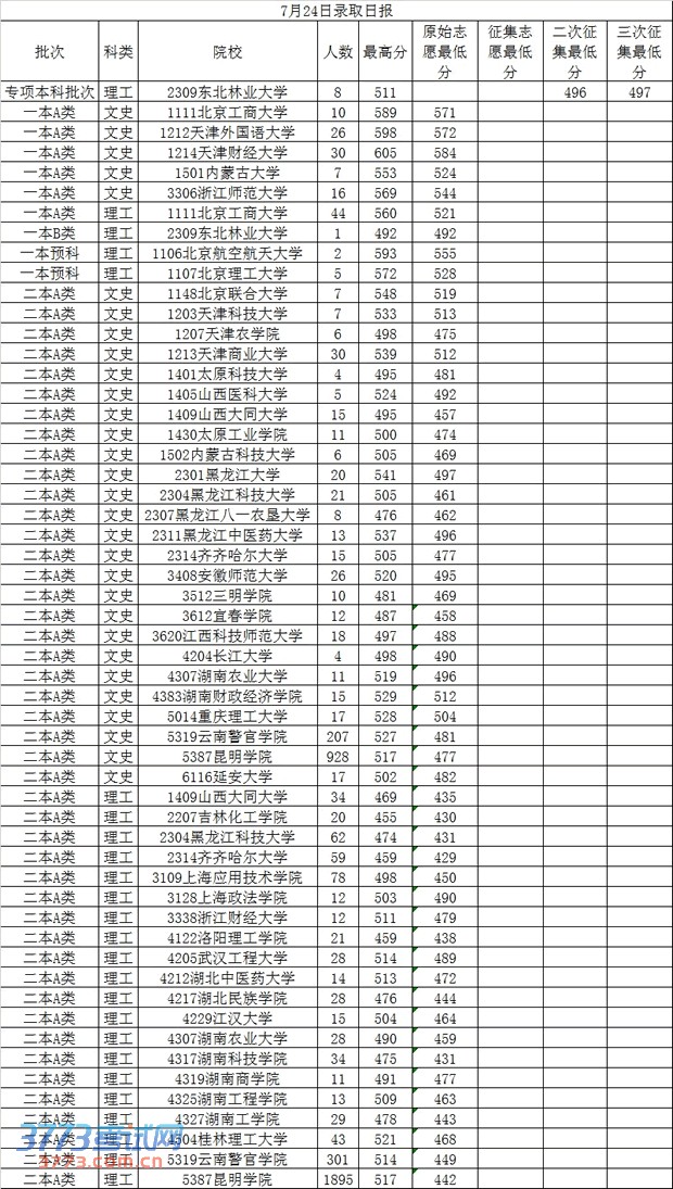 2013普高招生7月24日录取日报2013普高招生7月24日录取日报
