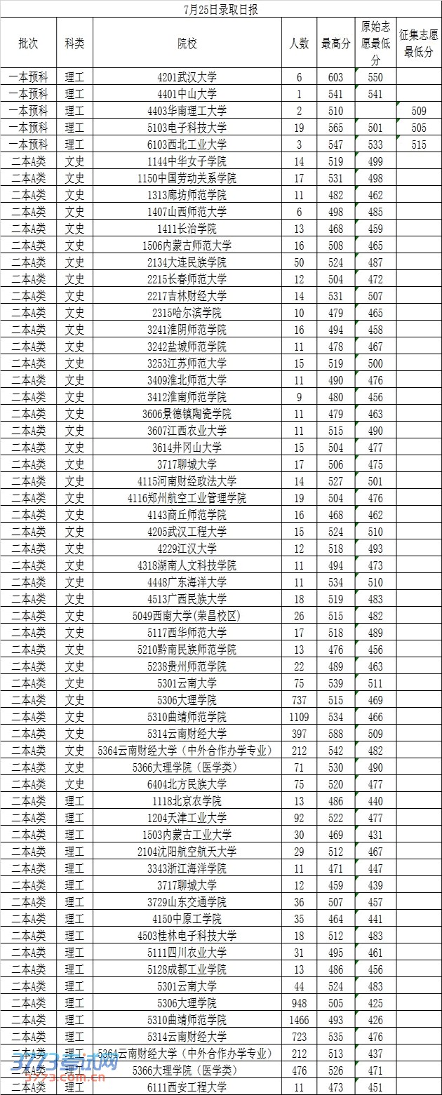 2013普高招生7月25日录取日报2013普高招生7月25日录取日报