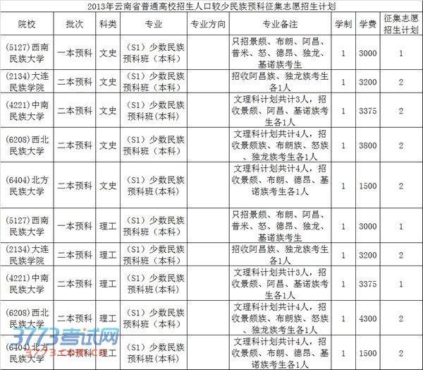 2013年云南省普通高校招生人口较少民族预科征集志愿招生计划2013年云南省普通高校招生人口较少民族预科征集志愿招生计划