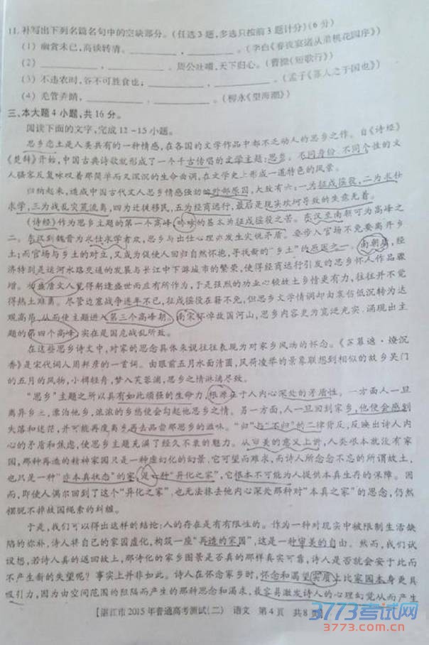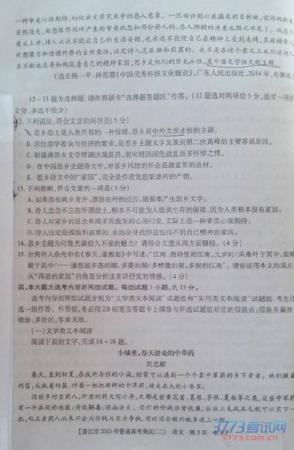15 (1)余光中在《春天,遂想起》中将自己家园虚化,构建“再造的家园”,是种审美自由。(2)唐诗的江南到多湖的江南,那种思念渴求激发幻觉从而产生幻化出文中的感人意象(3)诗人在文中不断追求和构筑自己的精神家园。