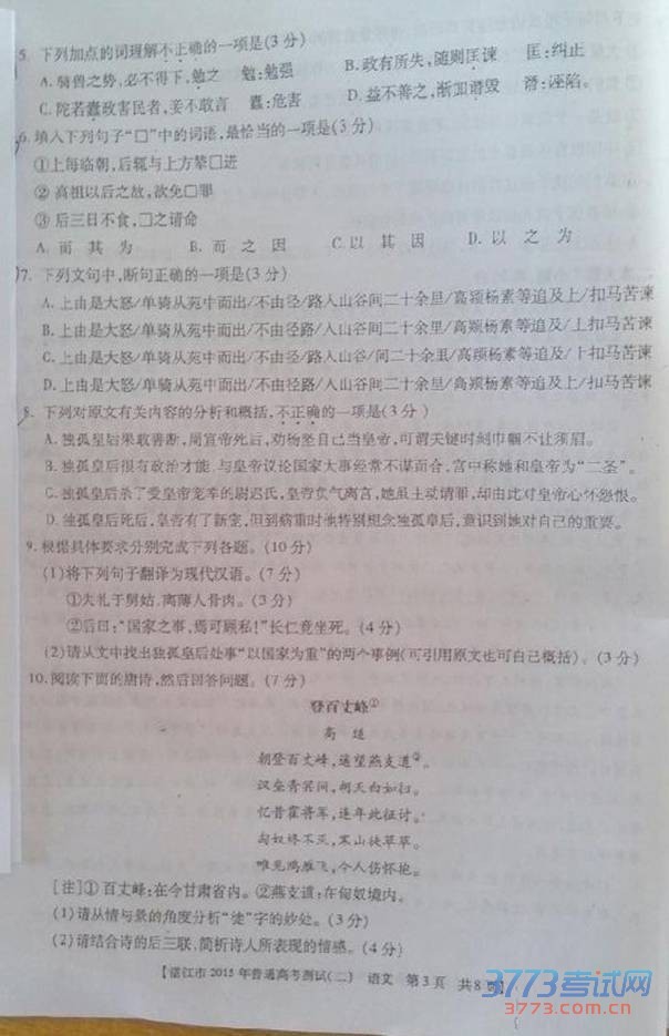 10古诗鉴赏(1)徒字写出了孤寒的高山空自承受着纷乱的迫害,渲染了一种悲凉的氛围,表达了诗人对于匈奴没灭而百姓受苦的伤怀之情