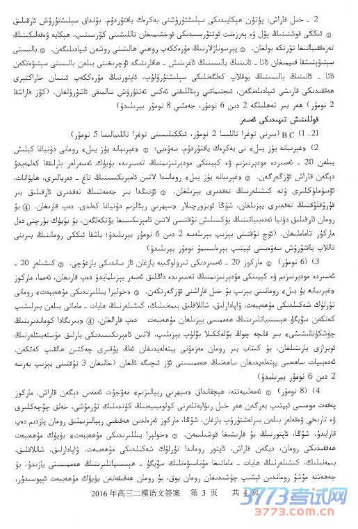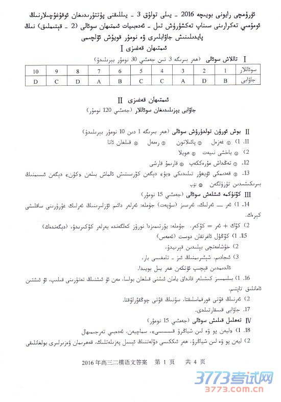 [组图]2016乌鲁木齐二模维语文答案及评分标准