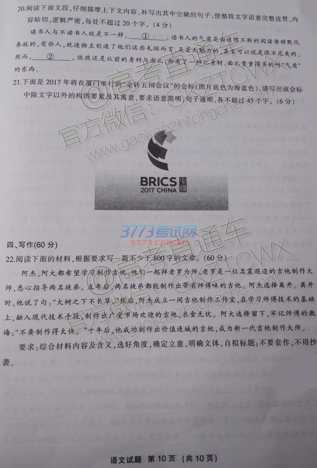 相关文章 2017四川内江五模试题及答案汇总2017四川内江五模语文试题发布2017青岛一模试题及答案汇总2017青岛一模语文试题 青岛高考模拟检测语文试卷2017东北三省三校三模语文试题发布2017东北三省三校三模试题及答案汇总2017高考冲刺卷文数学答案2017高考冲刺压轴卷数学理科三答案发布2017高考冲刺押题卷英语三答案发布2017高考冲刺押题卷文数一答案发布2017高考冲刺押题卷英语一答案发布2017高考冲刺押题卷文综四答案发布2017高考模拟调研卷理综五答案发布2017高考模拟调研卷理综四答案发布2017高考模拟调研卷理综三答案发布 推荐专题 · 英语四六级查分 · 三省五校联考 · 甘肃省教育考试院 · 吉林省教育考试院 · 湖北省教育考试院 · 安徽招生考试网 · 河南招生考试信息网 · 招考资讯网 · 浙江省教育考试网 · 湖北招生信息网 · 重庆招考信息网 · 广东考试服务网 · 上海教育考试院 · 湖南省教育考试院 · 广西招生考试网 · 云南招生考试院 · 黑龙江省招生考试院 · 中考志愿填报 · 中考分数线 · 中考录取查询 · 中考查分网 · 中考作文网 · 中考试题答案网 · 高考零分作文 · 高考成绩查询2017 · 高考试题及答案 · 公安警察院校招生 · 西藏教育考试院 · 青海招考信息网 · 云南省招考频道 · 四川省教育考试院 · 陕西招生考试信息网 · 新疆招生网 · 广东省教育考试院 · 湖南招生考试信息港 · 重庆市教育考试院 · 湖北教育考试网 · 江西省教育考试院 · 江苏省教育考试院 · 吉林省教育信息网 · 黑龙江招生考试信息港 · 山西招生考试网 · 天津市教育招生考试院 · 北京教育考试院 · 辽宁招生考试之窗 · 内蒙古招生考试信息网 · 河北省教育考试院 · 山东省教育招生考试院 · 广西招生考试院 · 海南省考试局 · 河南省招生办公室 · 贵州省招生考试院 · 宁夏教育考试院 · 浙江教育考试院 · 上海招考热线 · 福建省教育考试院 · 安徽省教育招生考试院 · 成绩查询、录取查询、网上报名系统 · 香港高校内地招生 · 空军招飞 · 自主招生保送生小语种 · 中国大学排行榜 · 高考满分作文|高考作文 · 高考志愿填报指导、平行志愿 · 高水平运动员体育特长生招生 · 高考报名 · 艺术特长生 · 空乘招生民航招飞 · 高考志愿填报 · 军校招生网_国防生招生_军校名单 · 单招 移动站 电脑版 专题 3773考试网 琼ICP备12003406号-1