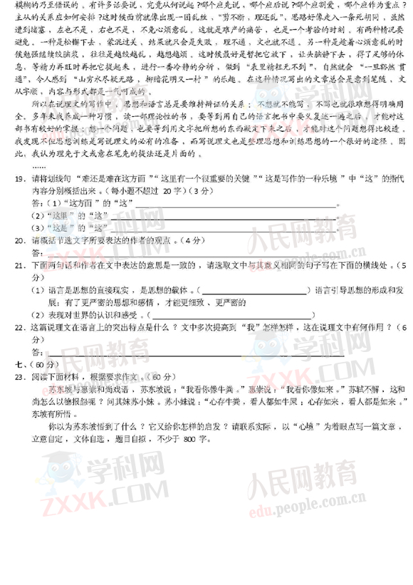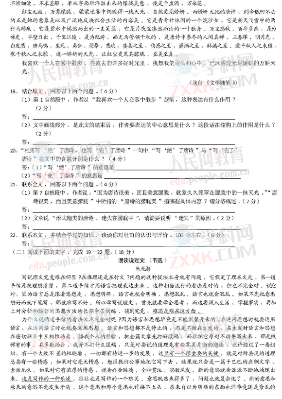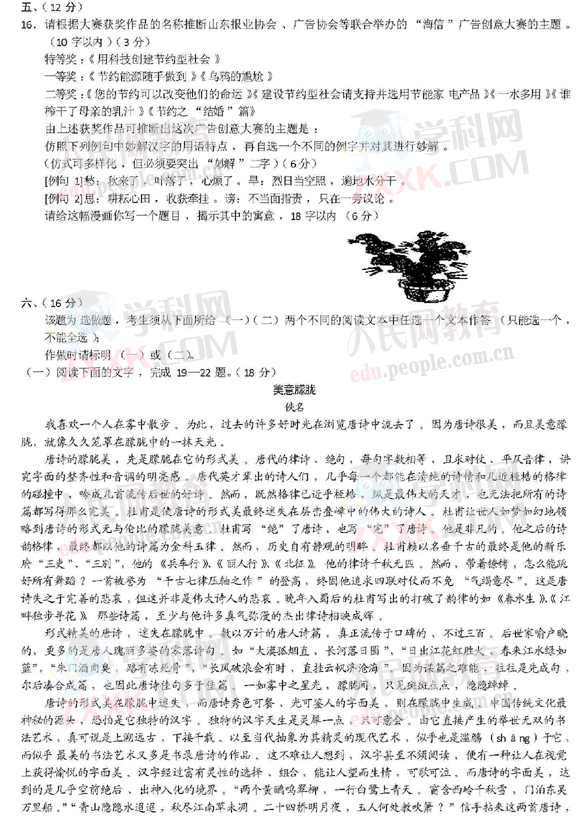 山东泰安英雄山中学高三第一次复习检测(语文)