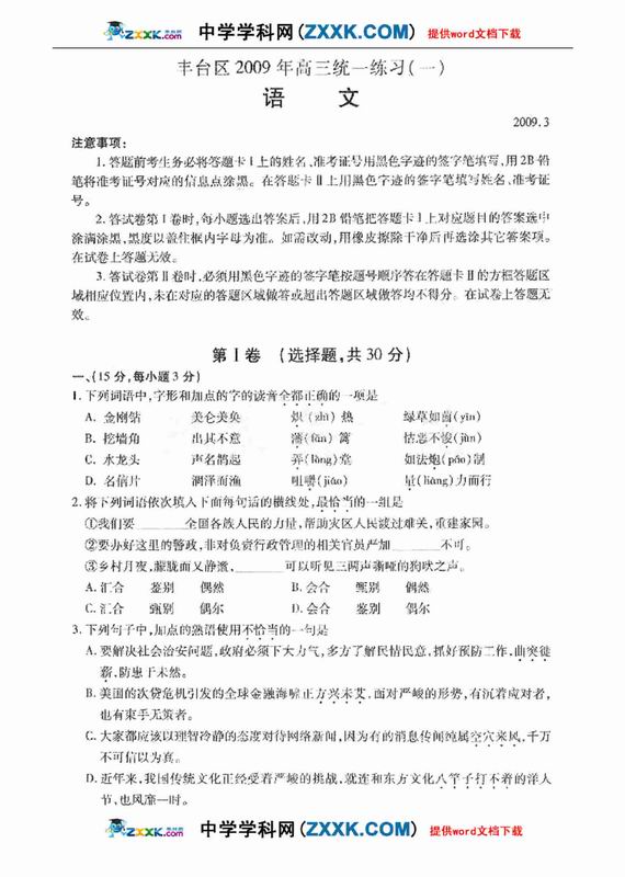 北京市丰台区2009年高三统一练习语文