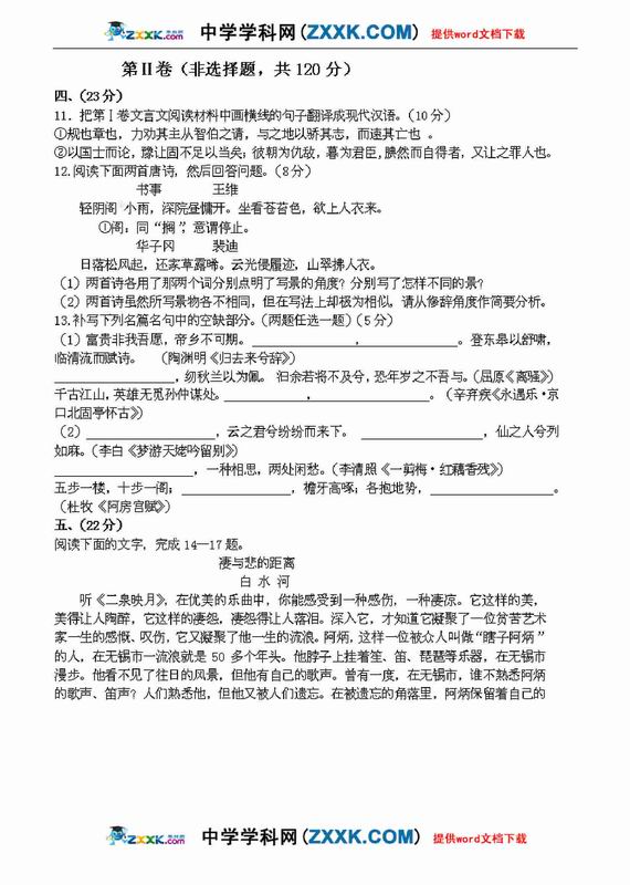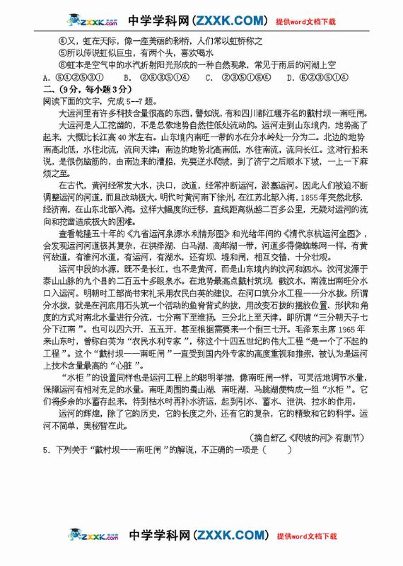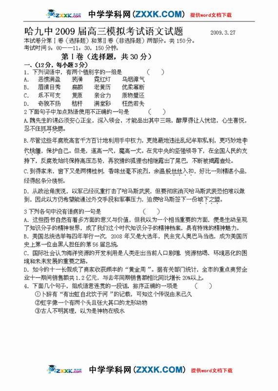 2009年哈尔滨九中高考模拟考试语文