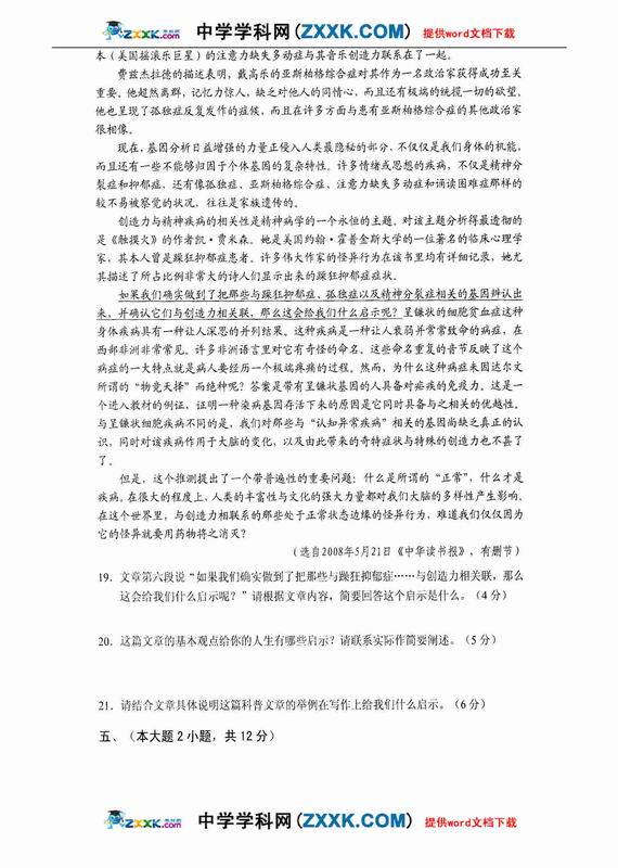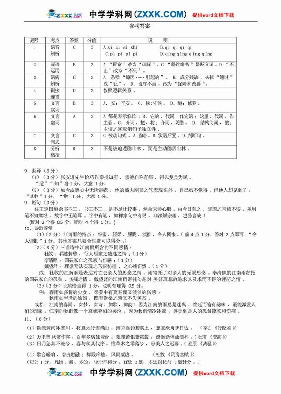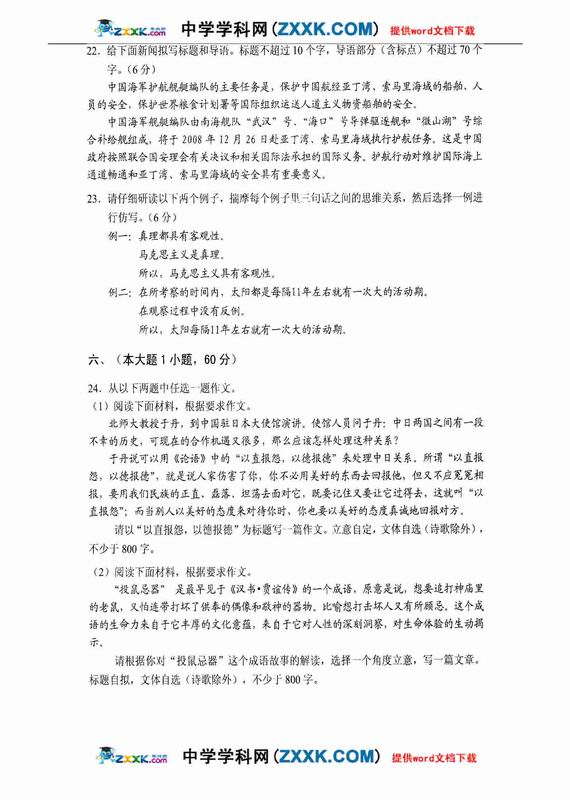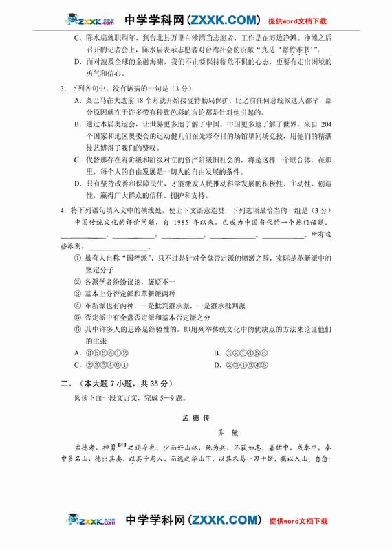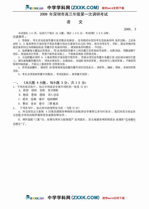 09年深圳市高三第一次调研考试-语文