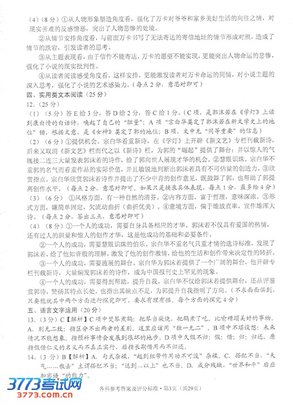 (4)从文中我们可以看到,郭沫若的“崛起”源白各种主客观条件,一个人的成功不也如此吗?请结合全文,谈谈你的看法。(8分)