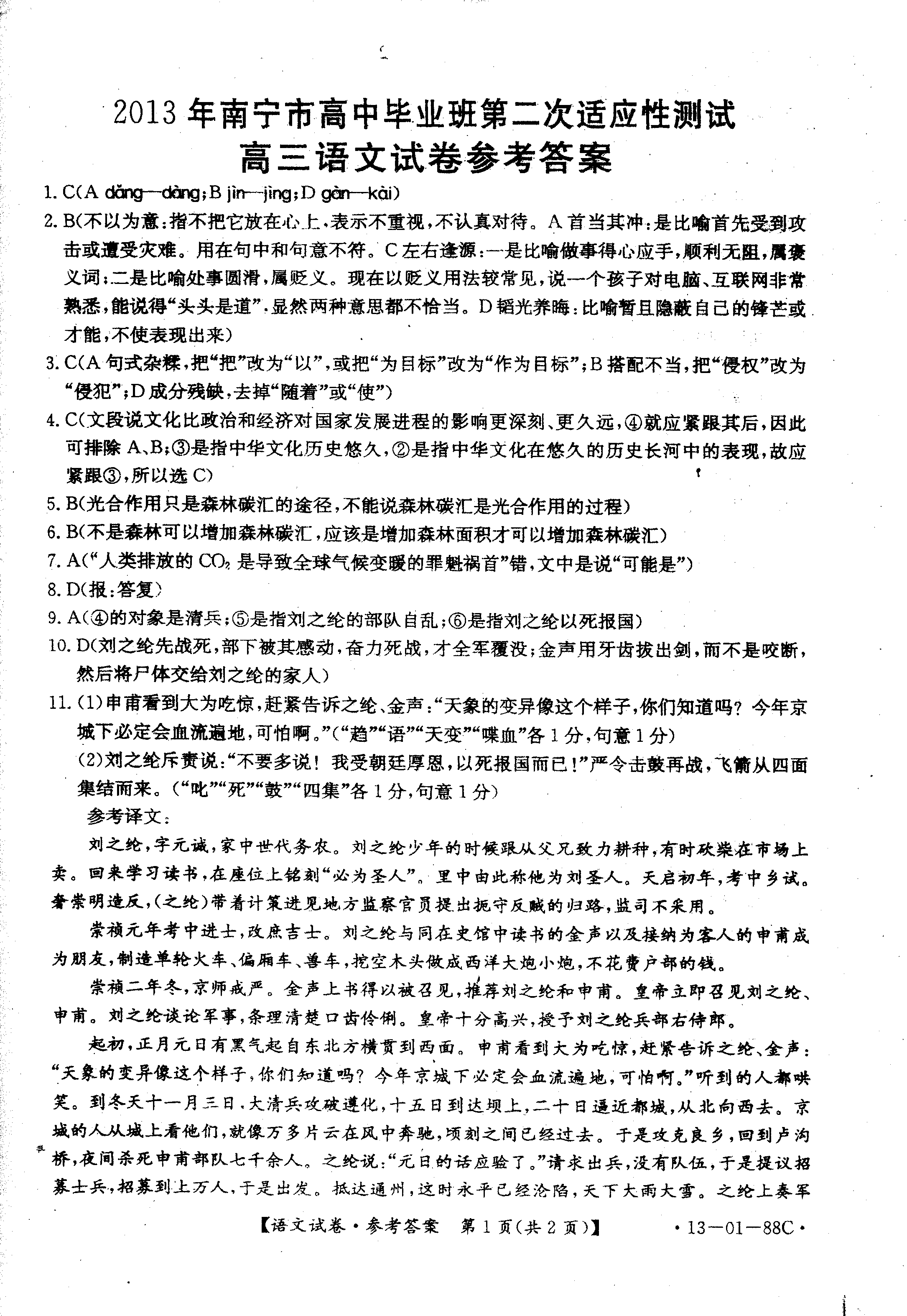 广西省南宁市2013届高三毕业班第二次适应性测试语 文 试 题