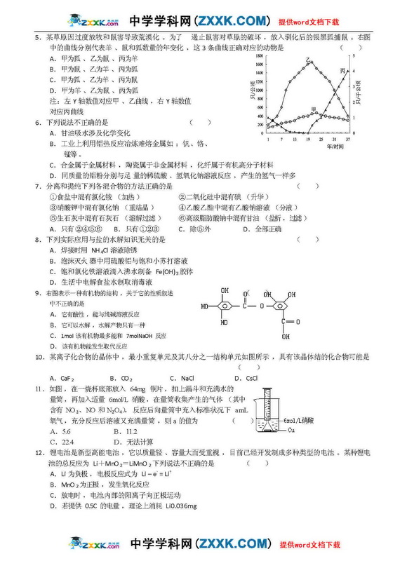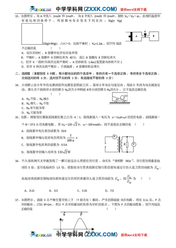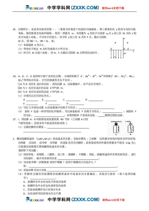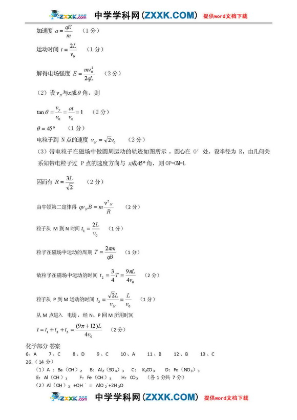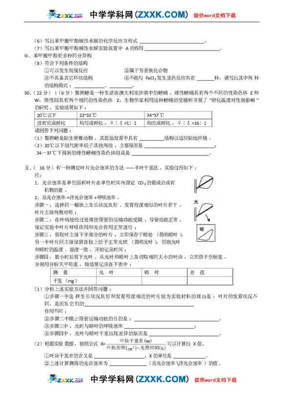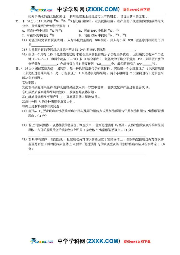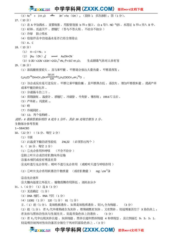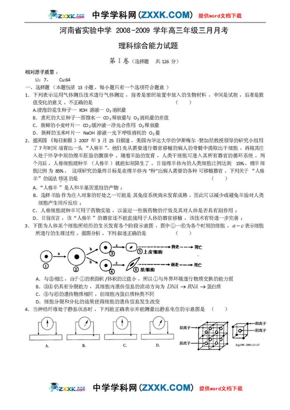 河南省实验中学09年高三第二次月考-理综