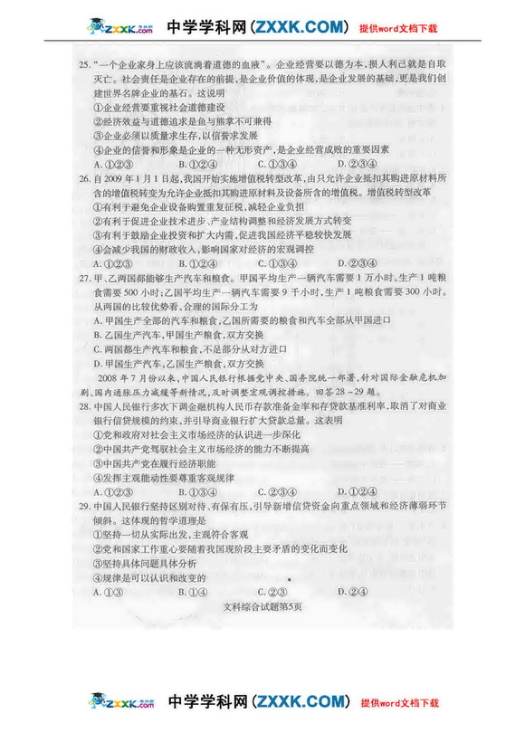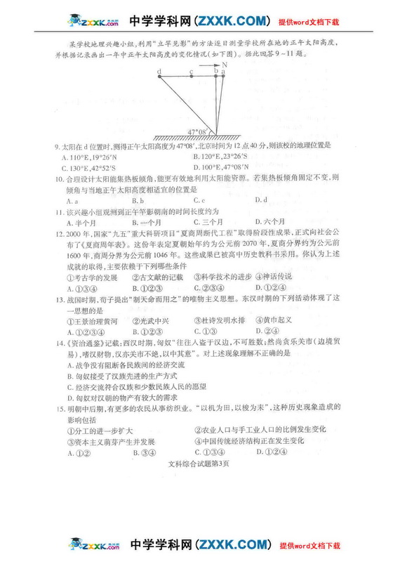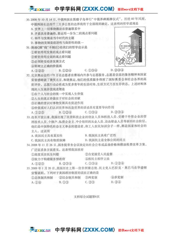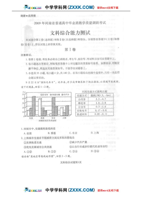 2009年河南省普通高中毕业班教学质量调研考试-文综