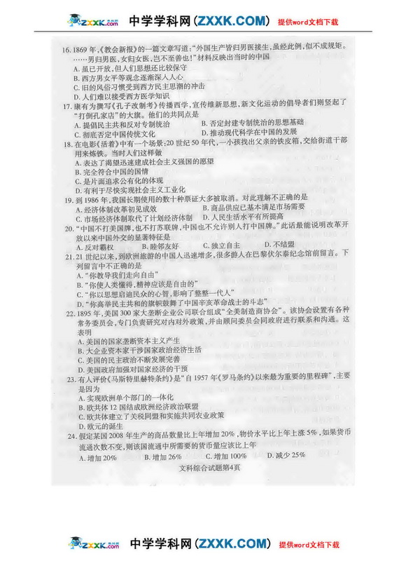3773考试网2016高考高考文综理综正文