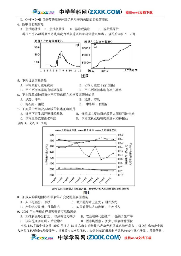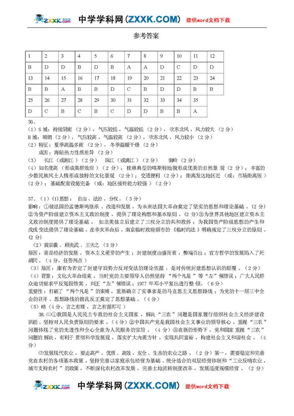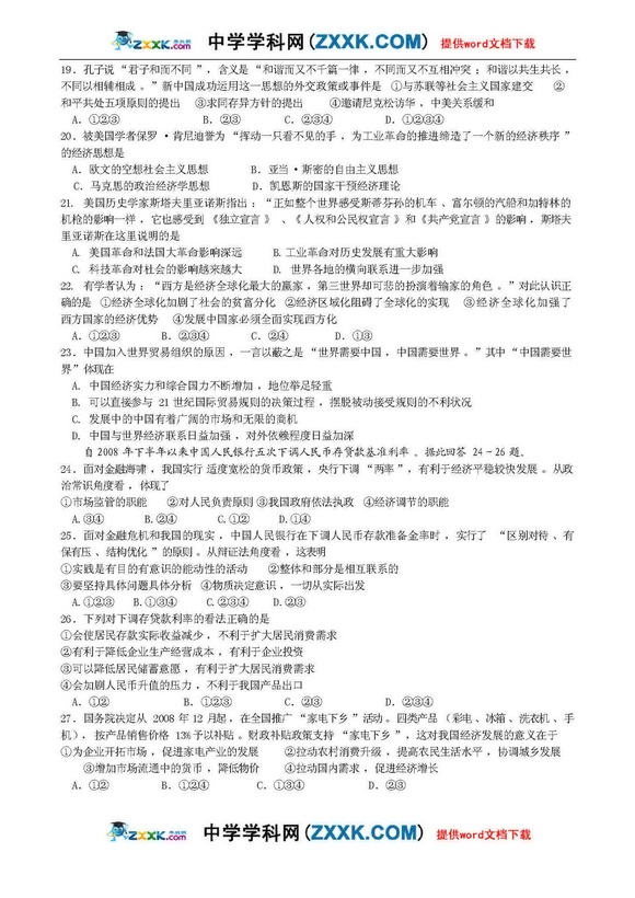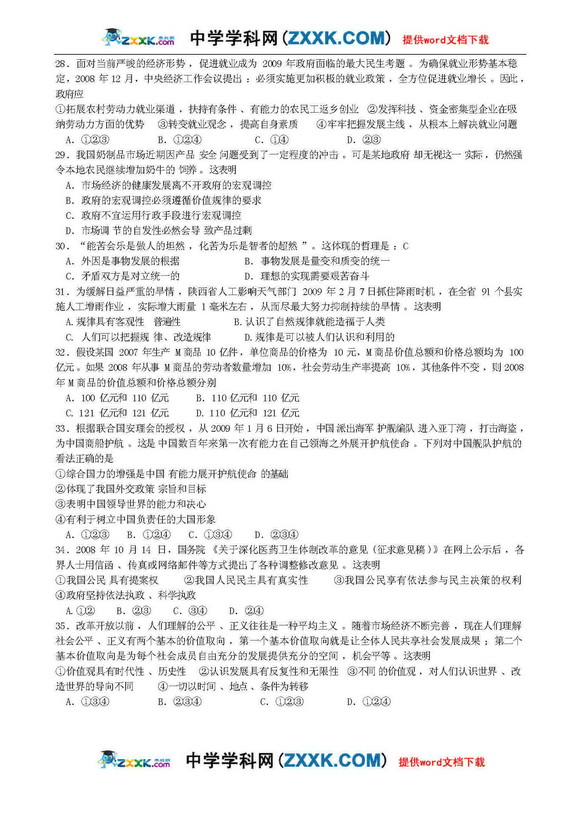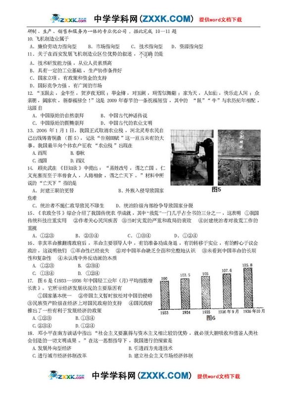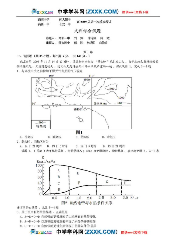 陕西西安市四校09届高三第一次模拟-文综