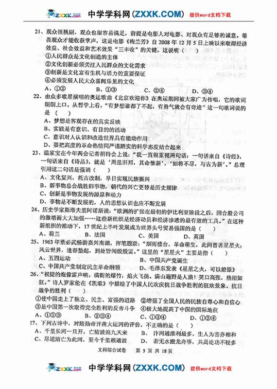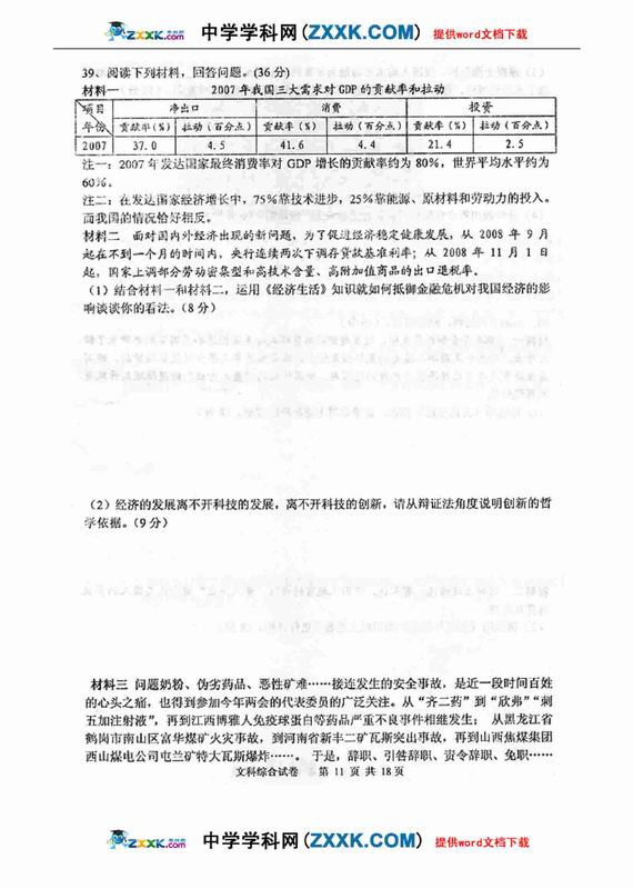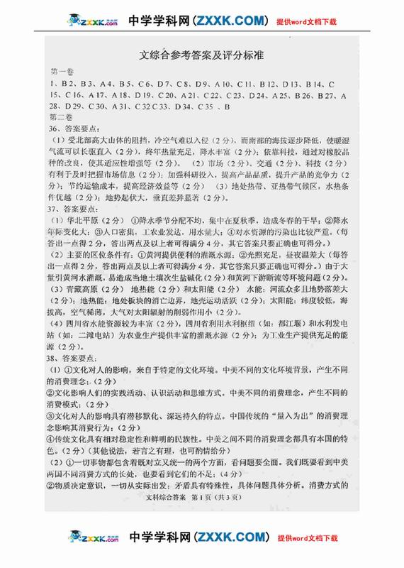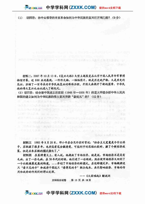 3773考试网2016高考高考文综理综正文
