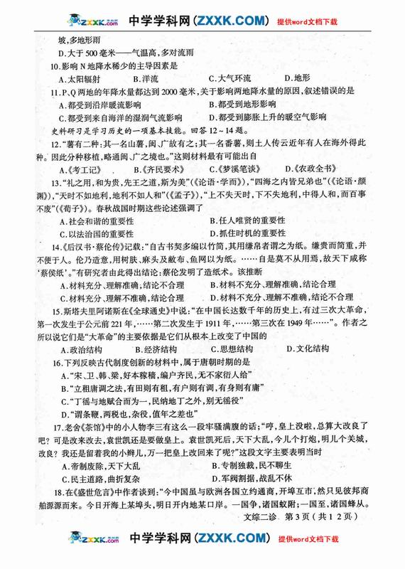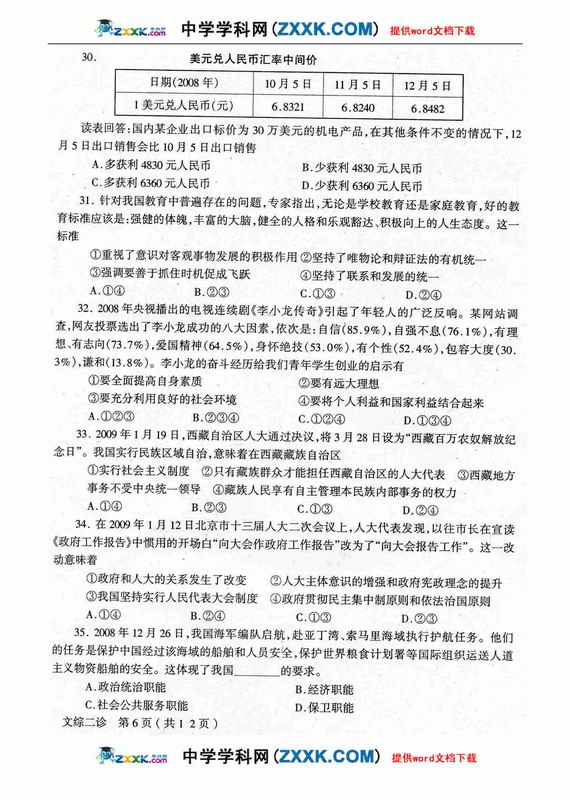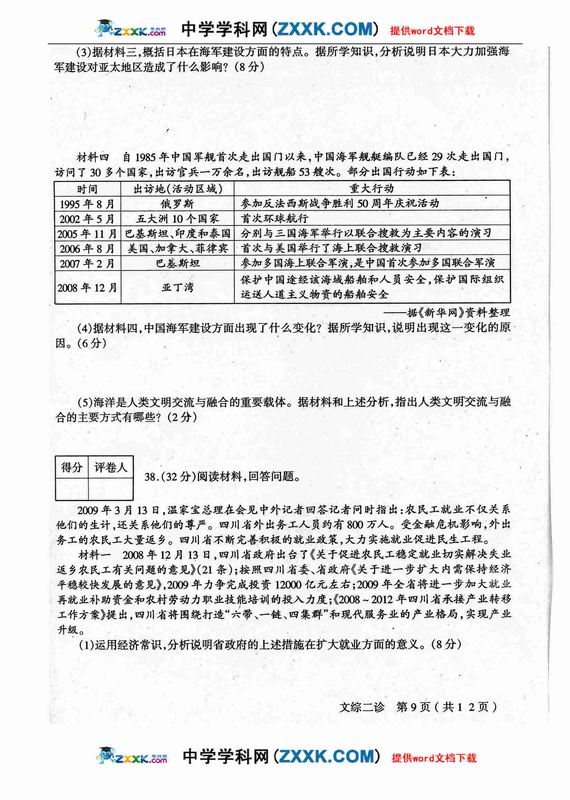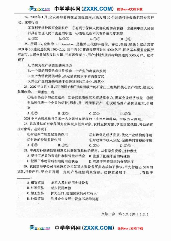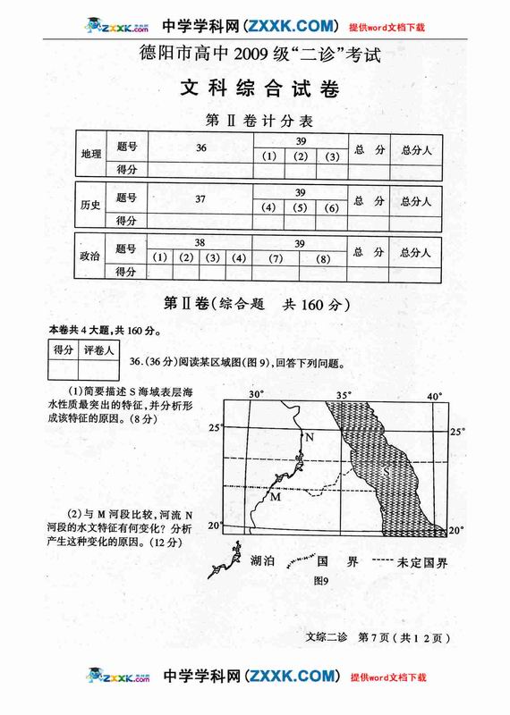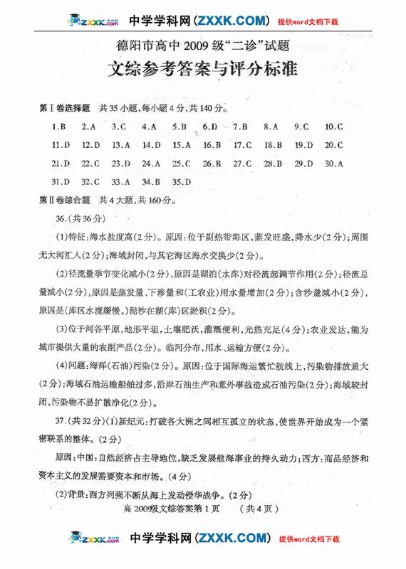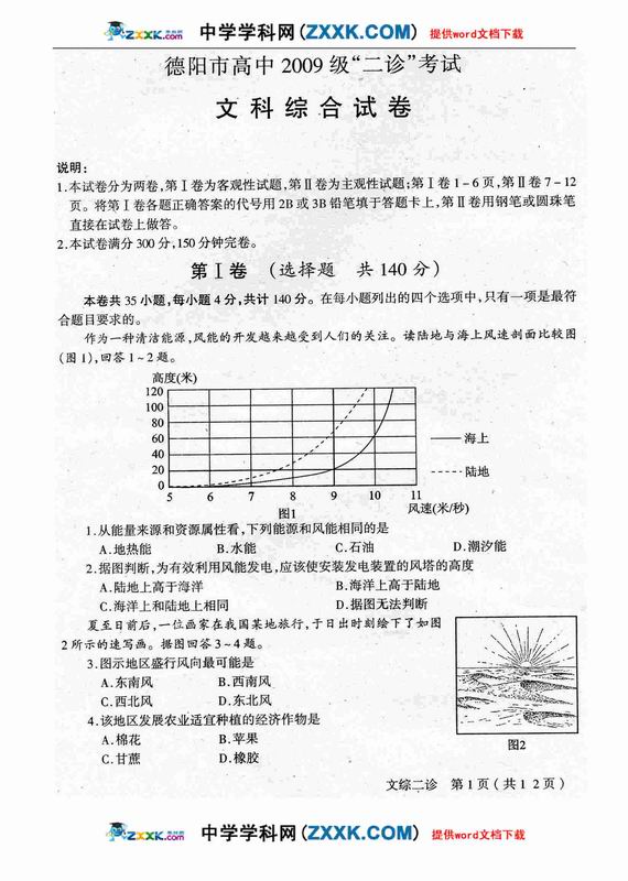 四川省德阳市高中09级“二诊”考试文综