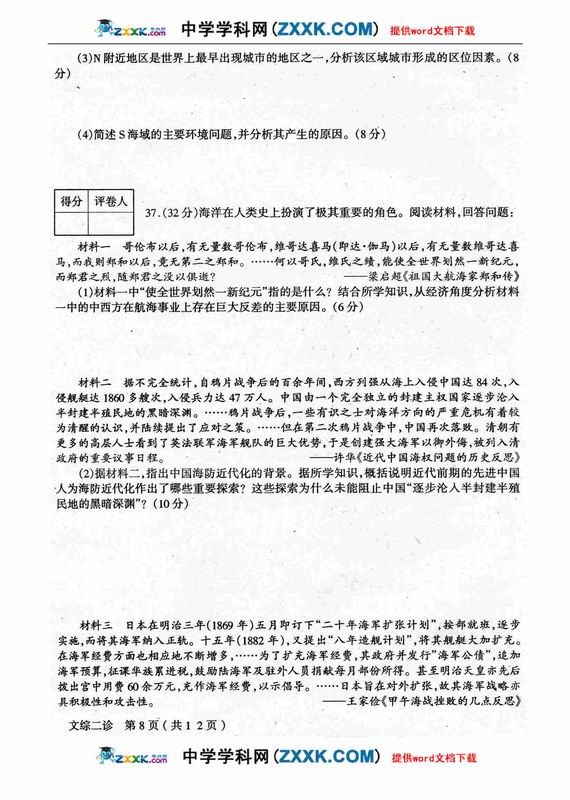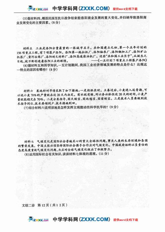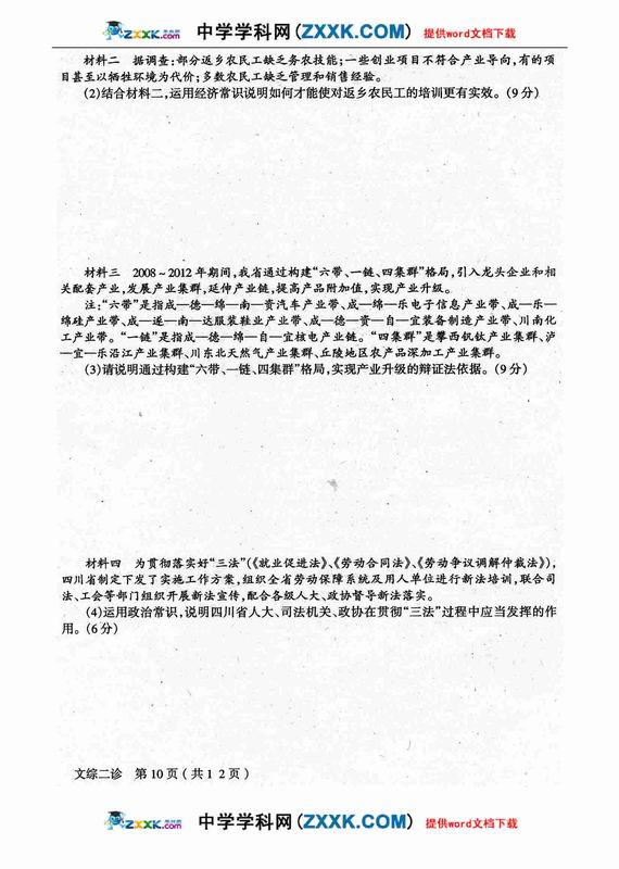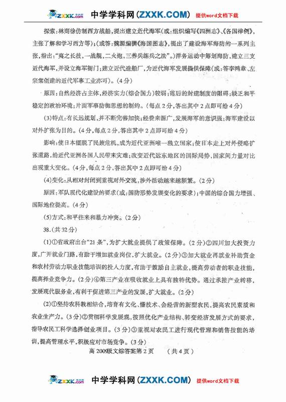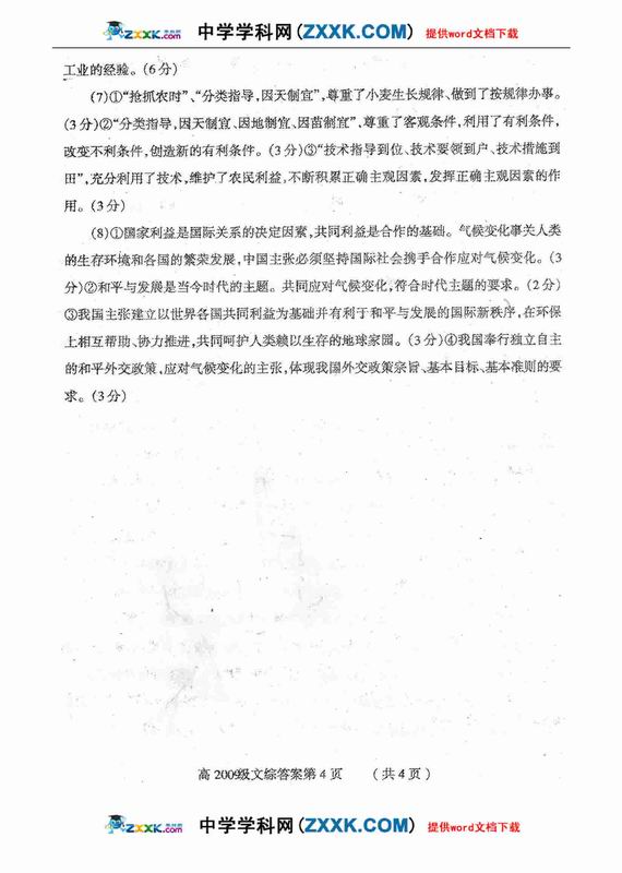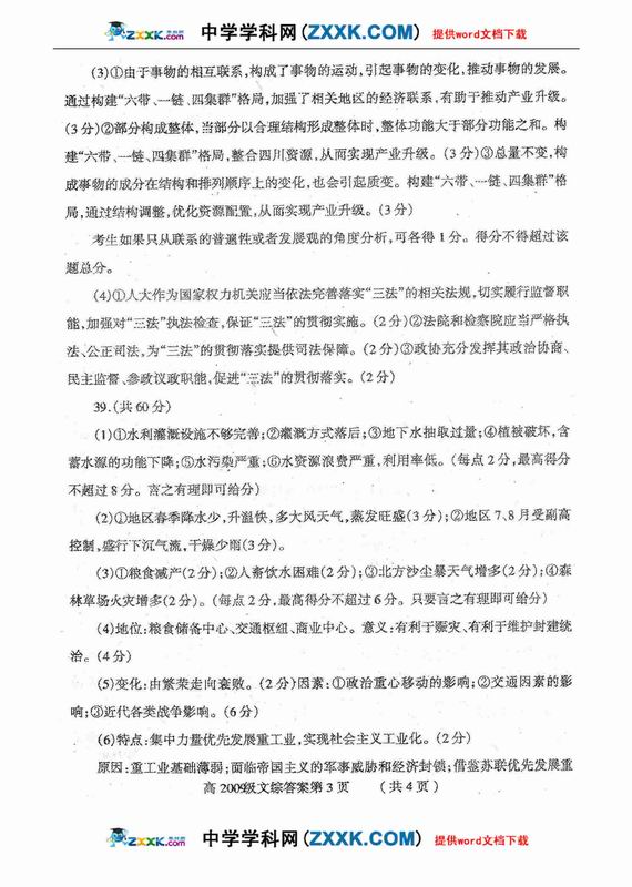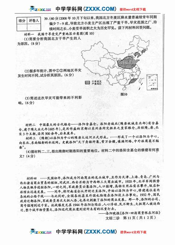 四川省德阳市高中09级“二诊”考试文综