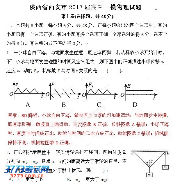 以下是西安市2013年的高考一模理综试题:点击免费下载