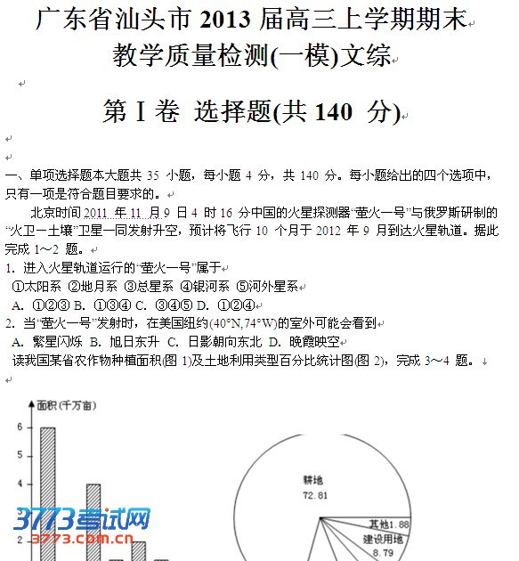2013汕头市高三文综一模考试试题:点击免费下载。