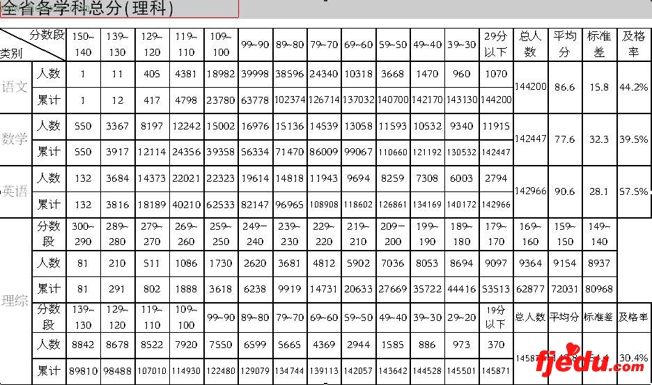 据统计,今年全省九市达标中学中,参加省质检的理科考生有143079人,文科考生有80612人。