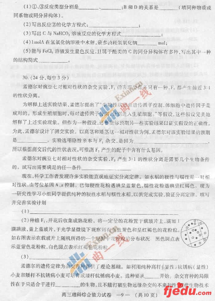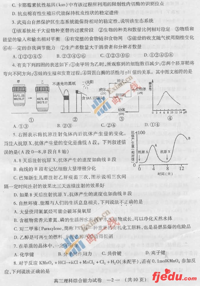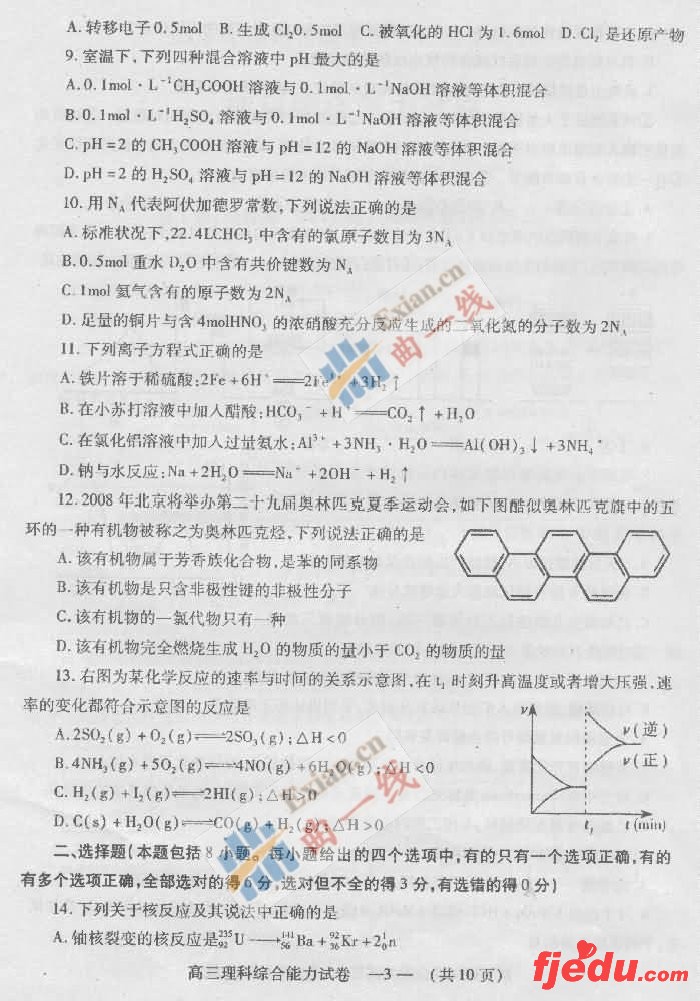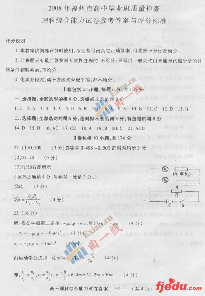 2008年福州市高中毕业班质量检查理科综合能力试卷