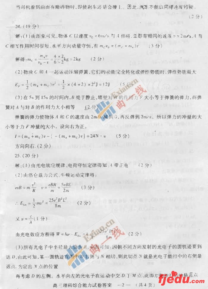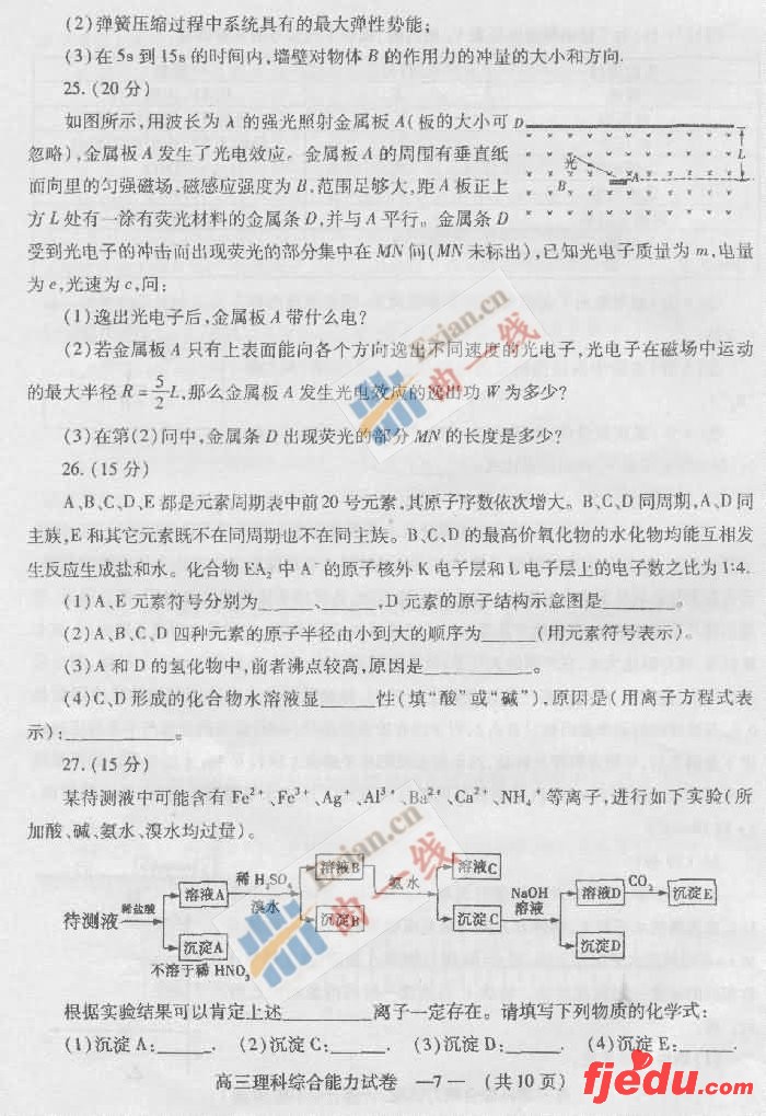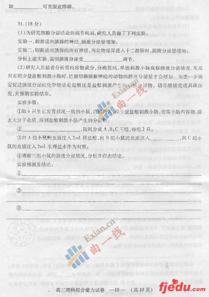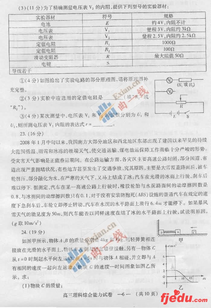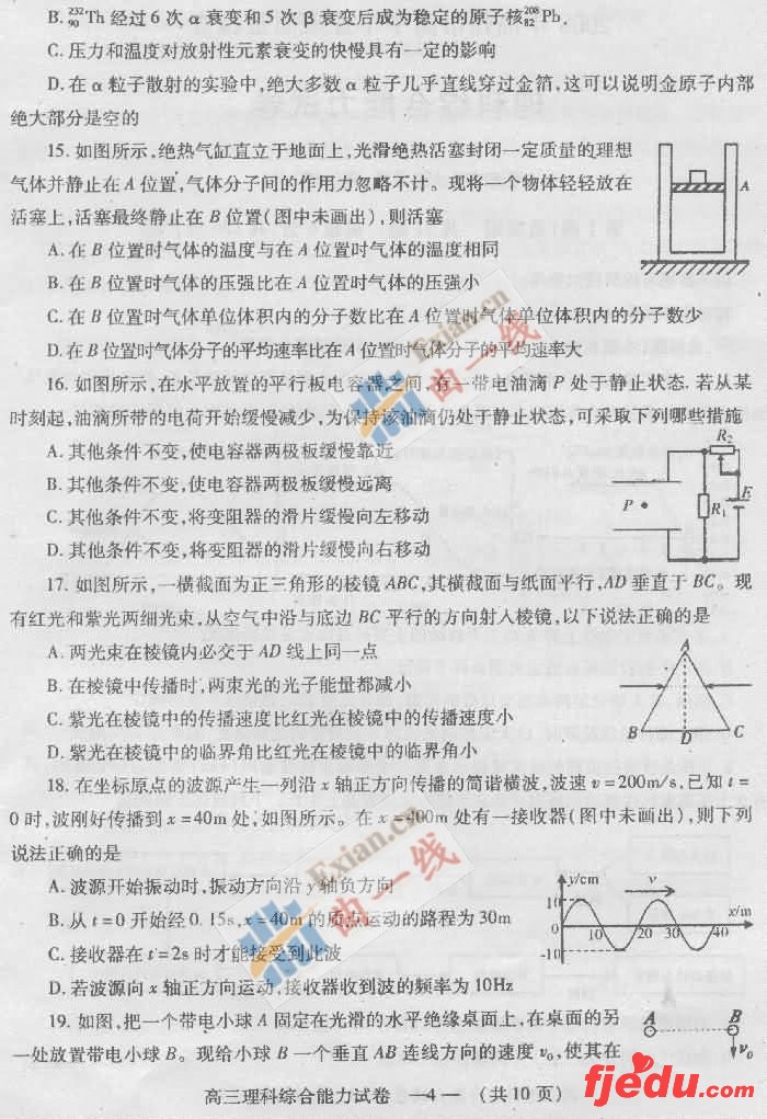 2008年福州市高中毕业班质量检查理科综合能力试卷