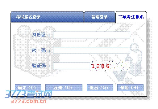 1.考生  请点击输入登录窗体右上方  三项考生报名  登录;