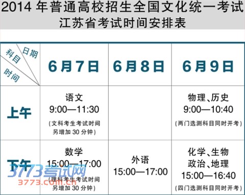 [图文]2014江苏高考时间安排