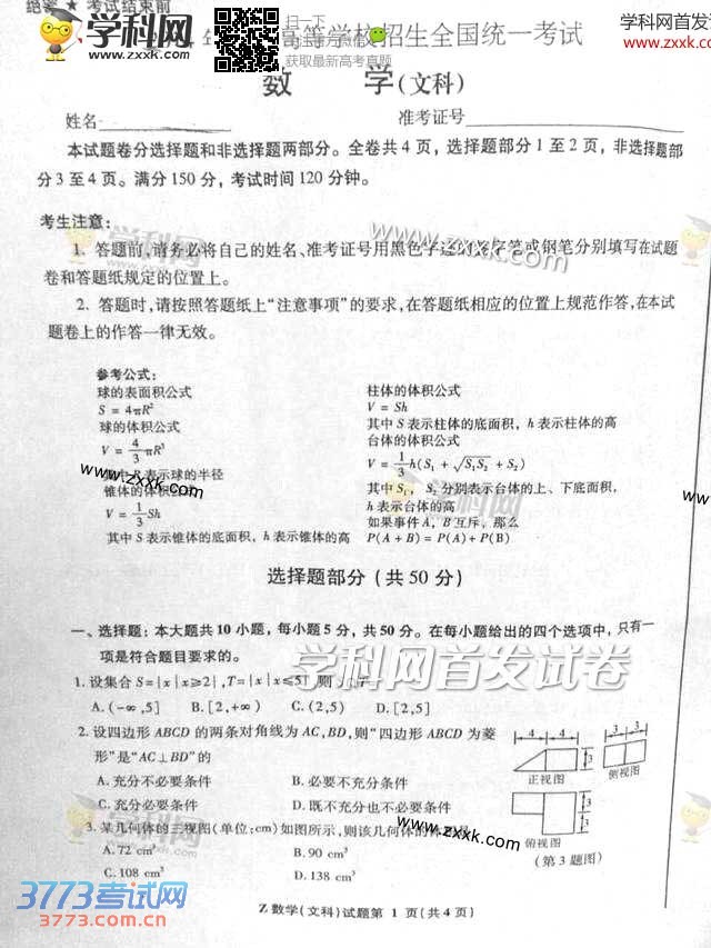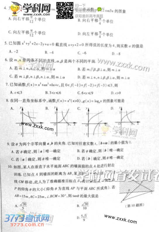 [组图]2014浙江高考文科数学试题发布