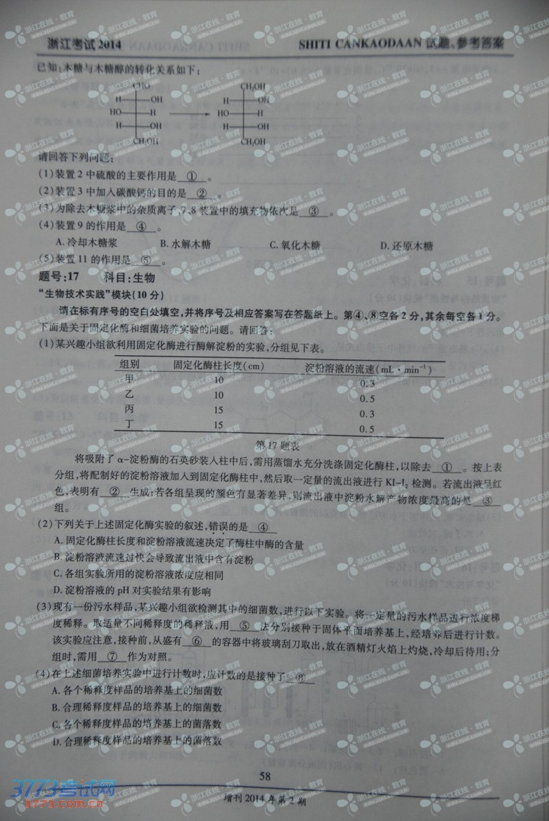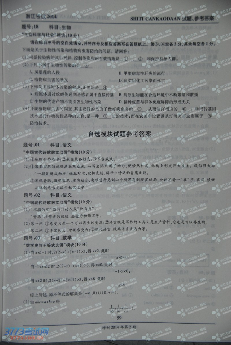 [组图]2014年浙江高考自选模块试题及答案