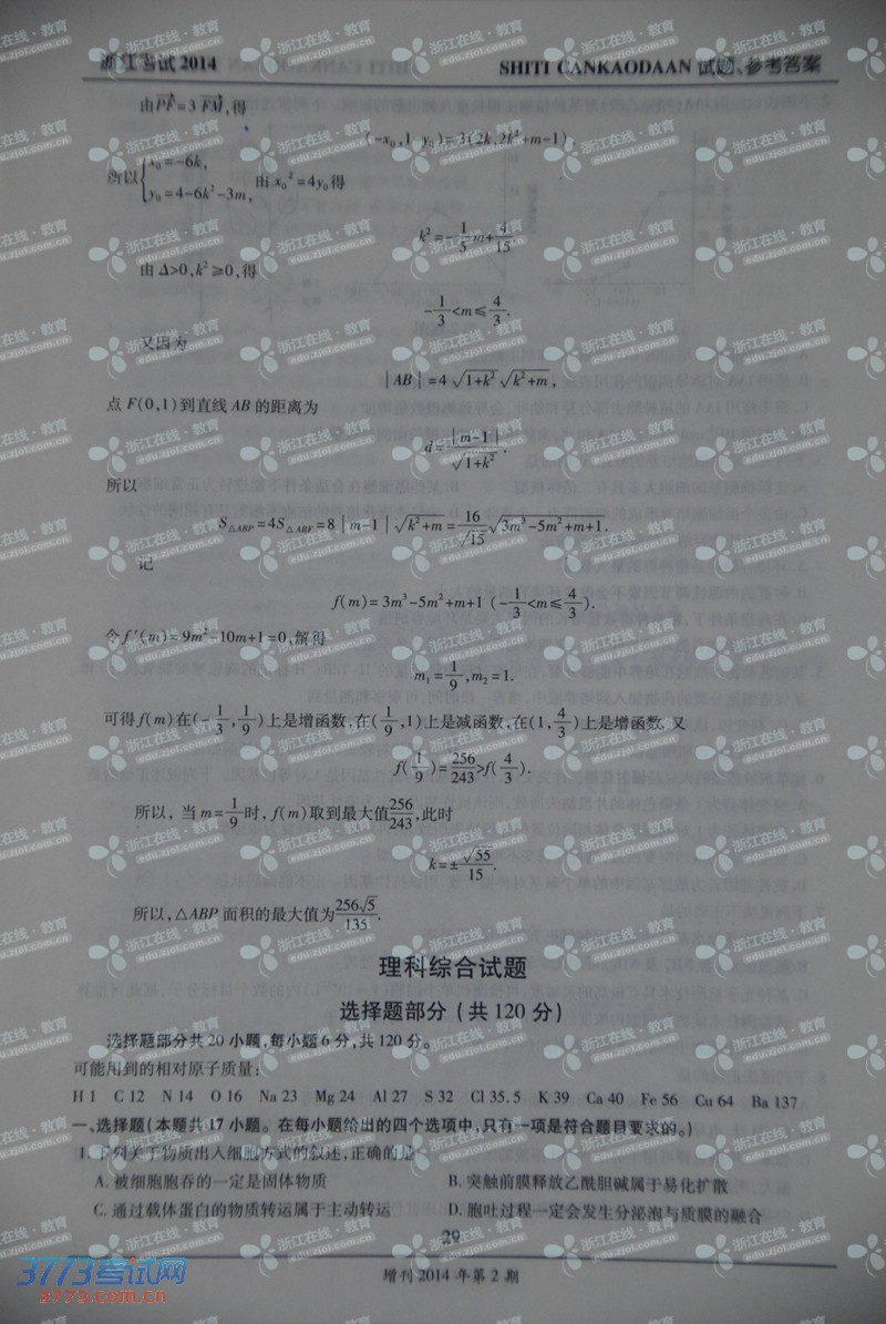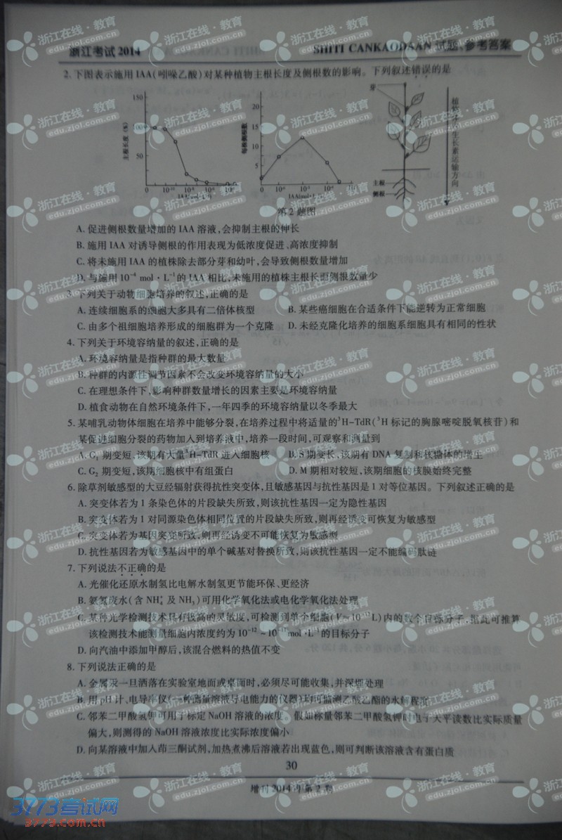 [组图]2014浙江高考理综试题及答案(理科综合)