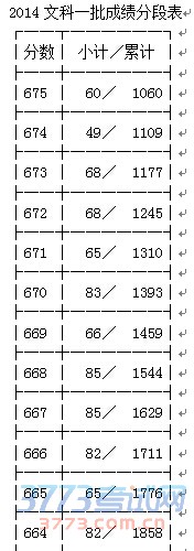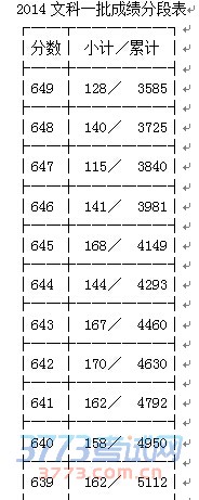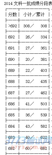 同时还公布了2014年浙江高考文科一批分数段统计表。2014年浙江高考一本分数线为:文科621分;理科597分。