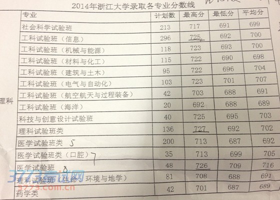 今年浙大录取的理科最高分为727分,超出一本线130分,在理科试验班类。文科最高分为705分,超出一本线84分,在社会科学试验班。